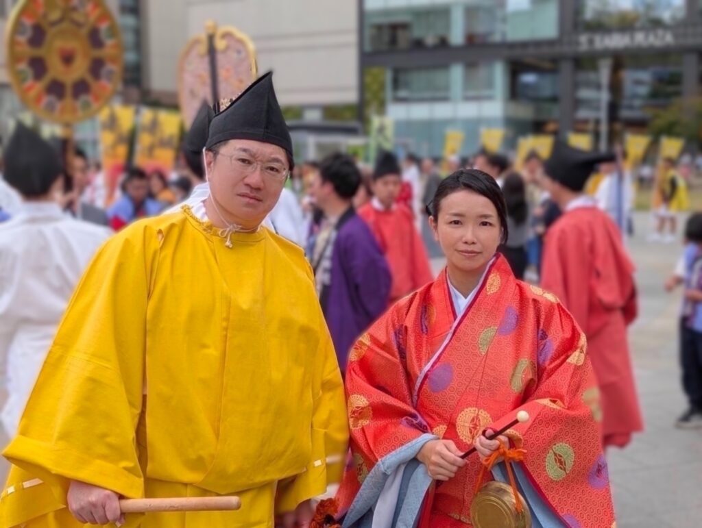 当日のパレードでは「竹取物語」をテーマにかぐや姫と4人の貴公子を乗せたみこしを中心に、当支部の須釜支部長、中嶋副支部長も平安衣装に身を包み地域の皆さま総勢500人と天神の中心部を巡りながら、かぐや姫絵巻を繰り広げました。幻想的で荘厳なパレードに参加させて頂き、大変有意義な時間となりました。